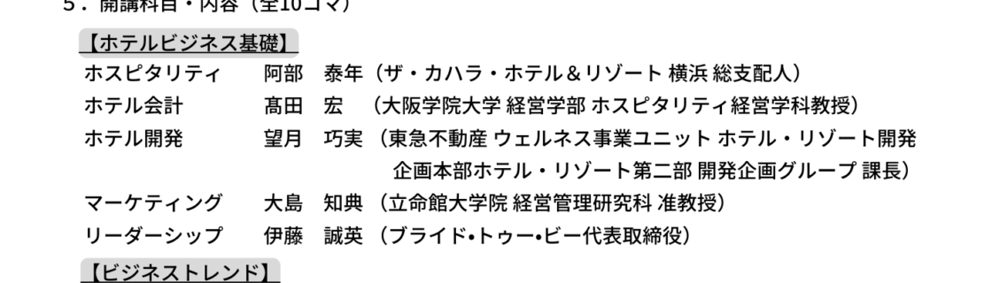 「リカレント教育紹介およびホスピタリティ業界の魅力発信」パンフレットのご案内